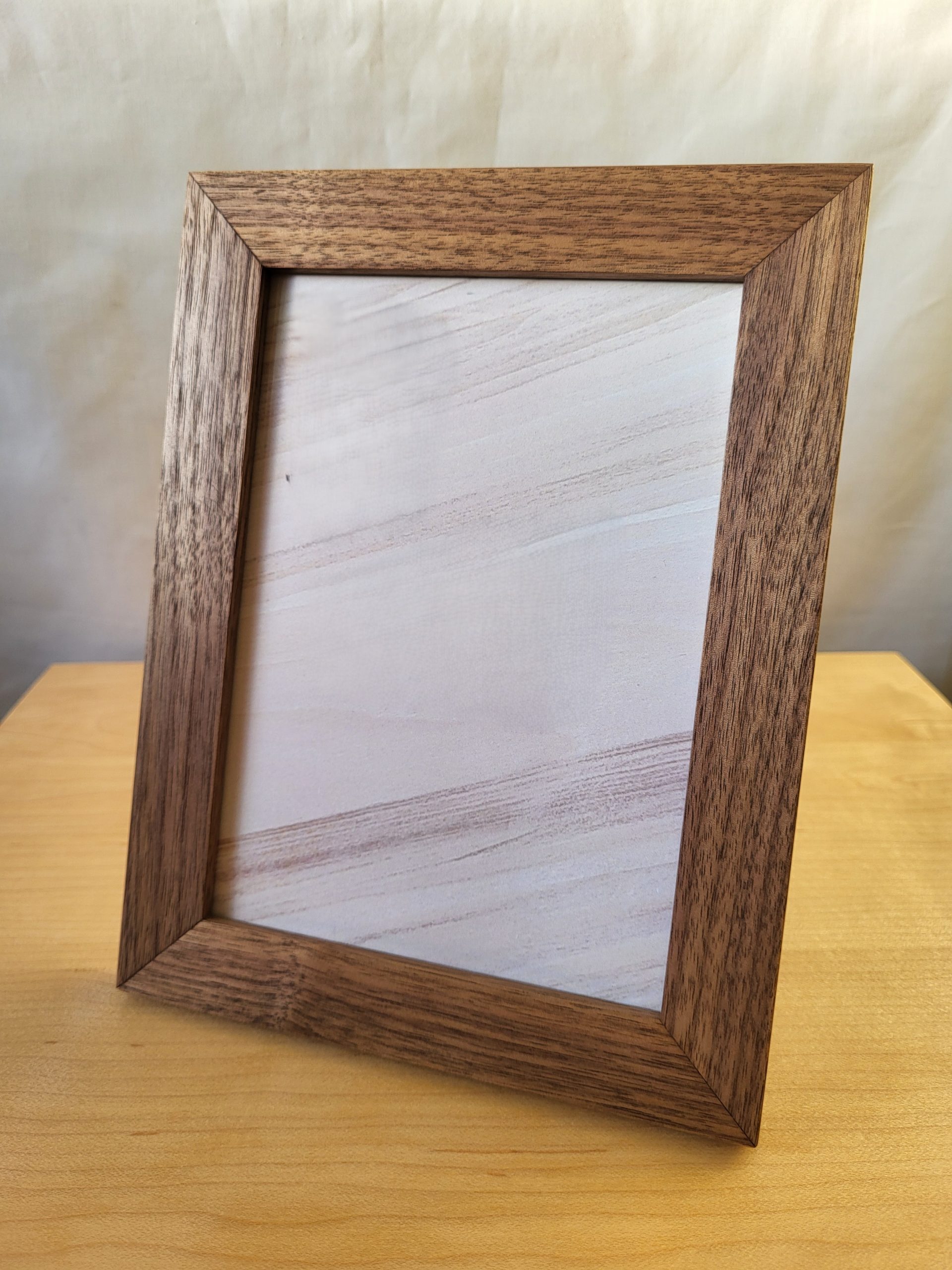 Experience the warmth and charm of our handmade picture frame, meticulously crafted from solid walnut. The rich, dark tones of the walnut wood bring a touch of elegance and sophistication to any room, making it the perfect showcase for your cherished memories. This exquisite picture frame not only serves as an elegant display for your photos but also uplifts the overall decor of your space.
